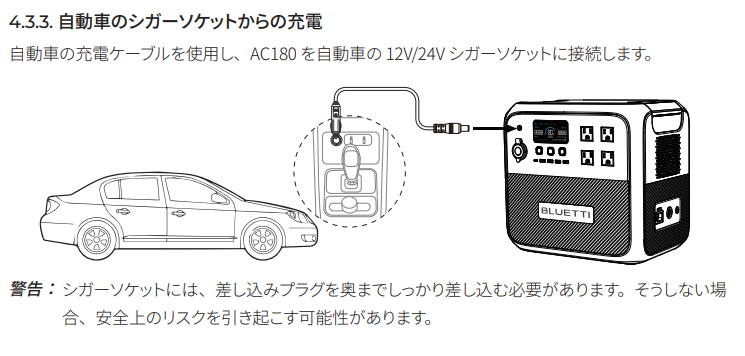 シガーソケット充電 (最大W)120W200W (12V/24V対応)