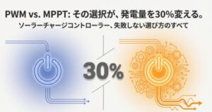 最近の走行充電器には、ソーラーからの電気も一緒に管理してくれる「MPPT方式」のコントローラーが内蔵されているものが多く、これを利用すれば配線も非常にシンプルになります。