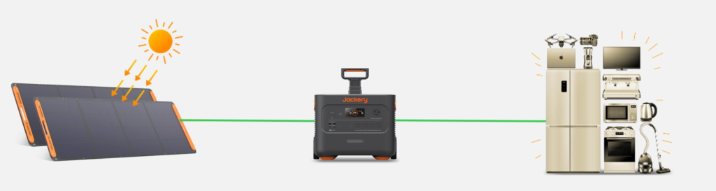 普段からポータブル電源を壁のコンセントと、動かし続けたい家電(例えばデスクトップPCや、通信機器、小型冷蔵庫など)の間に接続しておきます。